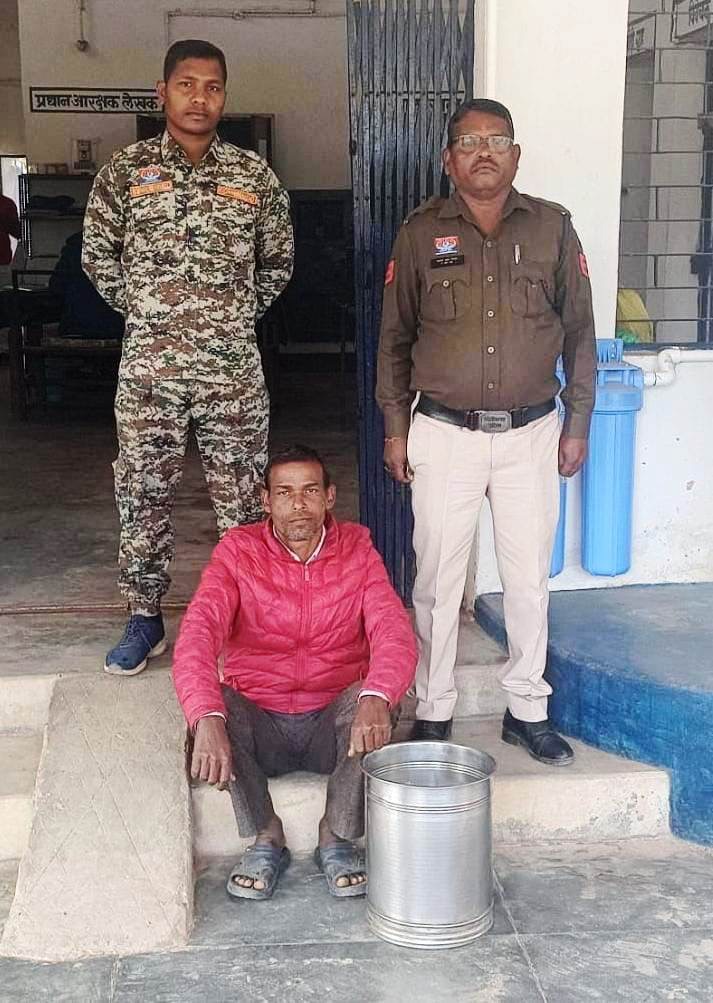 रायगढ़, 07 जनवरी । एसपी श्री दिव्यांग पटेल के दिशा निर्देशन एवं एसडीओपी खरसिया श्री प्रभात पटेल के मार्गदर्शन पर अवैध शराब के कारोबार पर प्रभावी नियंत्रण की दिशा में पुलिस लगातार कार्रवाई कर रही है। इसी क्रम में कल दिनांक 06 जनवरी 2026 को पुलिस चौकी जोबी प्रभारी सहायक उप निरीक्षक लक्ष्मी नारायण राठौर के नेतृत्व में जोबी पुलिस द्वारा ग्राम जोबी में पेट्रोलिंग के दौरान मुखबीर से मिली सूचना पर त्वरित शराब रेड कार्रवाई की गई। मुखबीर ने सूचना दी थी कि ग्राम जोबी निवासी केशर प्रसाद राठिया अपने घर के आंगन में अवैध रूप से महुआ शराब की बिक्री कर रहा है। सूचना की गंभीरता को देखते हुए चौकी प्रभारी द्वारा तत्काल पुलिस टीम के साथ बताए गए स्थान पर दबिश दी गई। पुलिस को देखकर मौके पर मौजूद शराब पीने वाले लोग भागने लगे, वहीं पुलिस ने मौके से आरोपी केशर प्रसाद राठिया पिता घासीराम को घेराबंदी कर पकड़ लिया। पूछताछ के दौरान आरोपी ने अवैध शराब बिक्री करना स्वीकार किया, जिसके बाद उसके कब्जे से एक स्टील ड्रम में रखे 30 नग पॉलिथीन पैकेट में भरी करीब 15 लीटर हाथ भट्टी से बनी महुआ शराब, जिसकी अनुमानित कीमत 2250 रुपये है, तीन नग स्टील के गिलास तथा शराब बिक्री से प्राप्त 250 रुपये नगद को गवाहों के समक्ष बरामद किया गया। आरोपी केशर प्रसाद राठिया पिता घासीराम उम्र 50 वर्ष निवासी ग्राम जोबी चौकी जोबी थाना खरसिया का यह कृत्य आबकारी अधिनियम की धारा 34(2), 59(क) के तहत दंडनीय पाए जाने पर चौकी जोबी, थाना खरसिया में विधिवत अपराध पंजीबद्ध कर आरोपी को गिरफ्तार किया गया और उसे न्यायिक रिमांड पर भेजा गया है। इस संपूर्ण कार्रवाई में पुलिस चौकी प्रभारी जोबी सहायक उप निरीक्षक लक्ष्मी नारायण राठौर के साथ प्रधान आरक्षक दशरथ लाल सिदार, आरक्षक राजेंद्र राठिया, केशव राठिया एवं राजेश राठिया की सराहनीय भूमिका रही। क्षेत्र में अवैध शराब के निर्माण एवं बिक्री के विरुद्ध अभियान आगे भी लगातार जारी रहेगा।