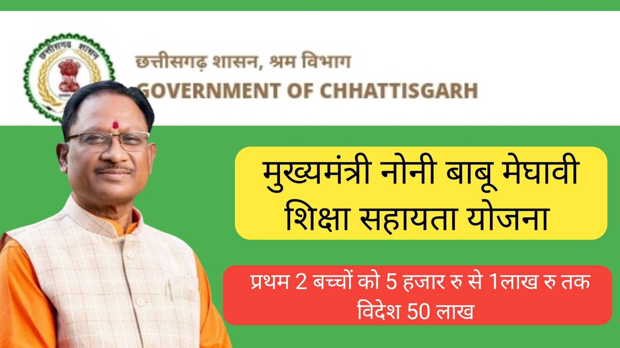 सारंगढ़ बिलाईगढ़, 8 फ़रवरी 2026/मुख्यमंत्री विष्णु देव साय द्वारा छत्तीसगढ़ के श्रमिक परिवार के उत्थान के लिए निरंतर किए जा रहे संवेदनशील पहल के अनुक्रम में श्रम विभाग की मुख्यमंत्री नोनी बाबू मेधावी शिक्षा सहायता योजना अंतर्गत 90 दिवस पूर्व पंजीकृत निर्माण श्रमिक के प्रथम 02 बच्चों को राशि रू 5000 से 1,00,000 (एक लाख) तक सहायता राशि तथा विदेश में अध्ययन हेतु राशि रू 50,00,000 (पचास लाख) उस देश के लिए निर्धारित करेंसी की अद्यतन दर पर भुगतान करेगी।