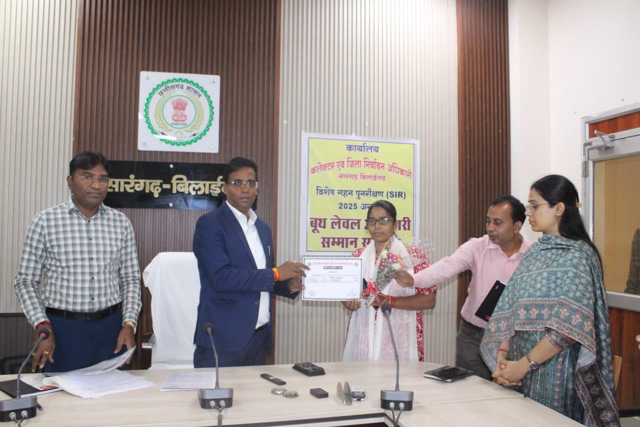 सारंगढ़ बिलाईगढ़, 22 नवंबर 2025/कलेक्टर डॉ संजय कन्नौजे ने भारत निर्वाचन आयोग के द्वारा चलाए जा रहे अभियान विशेष गहन पुनरीक्षण (एसआईआर) कार्य की प्रगति का समीक्षा भटगांव और सारंगढ़ के बीएलओ के साथ बैठकर किया। संकुल केन्द्र भटगांव और सारंगढ़ में बीएलओ से कलेक्टर ने उनसे पूछा कि, कितना कितना मतदाता हैं, वे कितना प्रतिशत तक वितरण कर चुके, कितना प्रतिशत जमा हो गया है और प्रतिदिन कितना वे कार्य पूरा कर पा रहे हैं। जानकारी लेने के बाद कार्य के दौरान आ रही उनकी समस्या के बारे में जानकारी लिया।