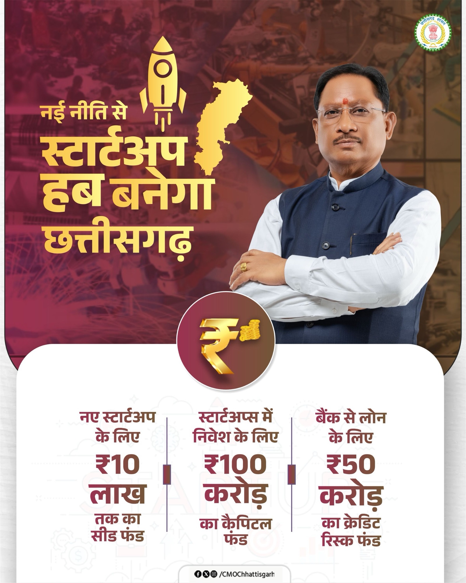 इसी क्रम में मुख्यमंत्री श्री विष्णु देव साय की अध्यक्षता में कैबिनेट द्वारा छत्तीसगढ़ नवाचार एवं स्टार्टअप प्रोत्साहन नीति को मंजूरी दी गई है, जिसके तहत नए स्टार्टअप्स में निवेश के लिए ₹100 करोड़ के कैपिटल फंड तथा बैंक से ऋण प्राप्त करने के लिए ₹50 करोड़ के क्रेडिट रिस्क फंड की व्यवस्था की जाएगी। इसके साथ ही नीति में सीड फंड सहायता और बैंक ऋण पर ब्याज में राहत जैसे प्रावधान भी शामिल किए गए हैं।