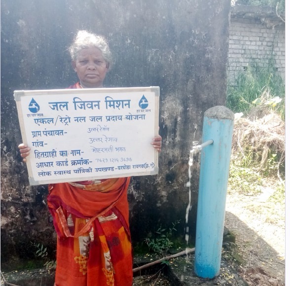 ग्राम उत्तर रेगांव की निवासी श्रीमती मोहरमती भगत जल जीवन मिशन की सशक्त हितग्राही बनकर उभरी हैं। योजना से पहले उन्हें प्रतिदिन घरेलू उपयोग के लिए दूर-दराज के जल स्रोतों पर निर्भर रहना पड़ता था। विशेषकर गर्मी के दिनों में पानी की तलाश में लगने वाला समय, श्रम और स्वास्थ्य पर प्रतिकूल प्रभाव डालता था। जल जीवन मिशन के अंतर्गत उनके घर नल जल कनेक्शन मिलने के बाद अब शुद्ध और सुरक्षित पेयजल घर पर ही उपलब्ध है। श्रीमती भगत बताती हैं कि इससे न केवल समय की बचत हुई है, बल्कि परिवार के स्वास्थ्य में भी सुधार आया है और जलजनित बीमारियों का खतरा काफी हद तक कम हुआ है। आज वे अतिरिक्त समय का उपयोग घरेलू, सामाजिक और आर्थिक गतिविधियों में कर पा रही हैं।