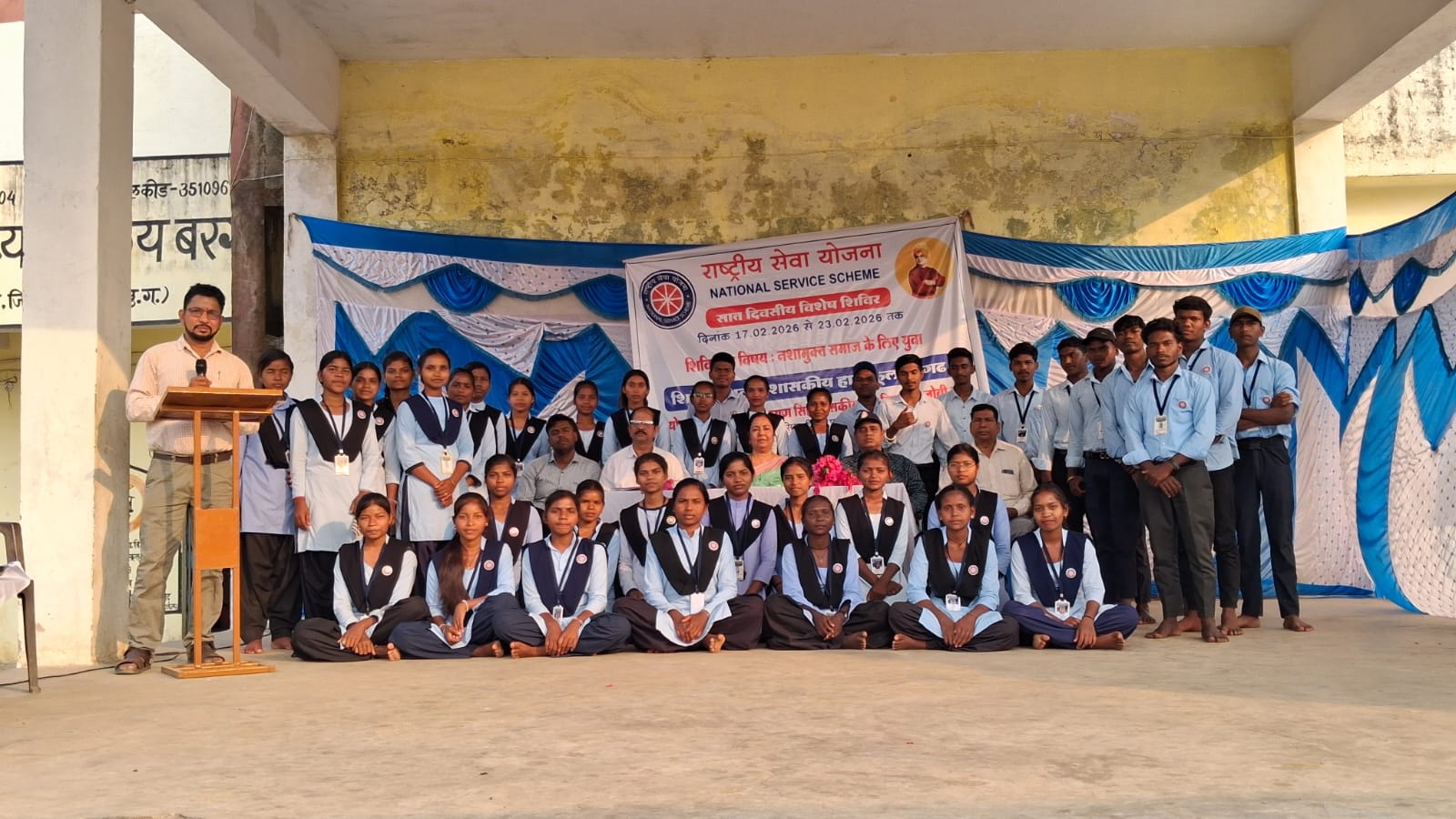 शुरुआत प्रातः प्रभात फेरी से हुई। स्वयंसेवकों ने जोशीले नारों के साथ समाज में जागरूकता का संदेश दिया। परियोजना कार्य के अंतर्गत स्वयंसेवकों ने स्थानीय सार्वजनिक परिसर एवं स्थलों आस-पास सफाई अभियान चलाया। नाली और सोखता गड्ढों का निर्माण कर उन्होंने स्वच्छता और स्वास्थ्य के महत्व को व्यवहारिक रूप से प्रदर्शित किया और स्वयंसेवकों ने भी “नशा मुक्त समाज और युवा“ विषय पर अपने विचार रखे। परिचर्चा में बड़ी संख्या में ग्रामवासी, शिक्षकगण, छात्र-छात्राओं बड़ी संख्या में उपस्थित रहे। साथ ही मुख्य अतिथि के रूप श्री मनोज त्रिपाठी एवं गांव के वृद्धजन मंचासीन व आमजनों का जमावड़ा आयोजन पंडाल के चहुं ओर खचाखच भरा रहा। सुबह परियोजना कार्य व जल पान के बाद दोपहर को बौद्वक परिचर्चा हुई और रात तक लोक नृत्य-संगीत की महफिल में सांस्कृतिक कार्यक्रम चलते रहे। इस दौरान प्रयोगशाला तकनीशियन पी पी.एस. सिदार एवं संलग्न अधिकारी कर्मचारियों का योगदान उल्लेखनीय रहा।