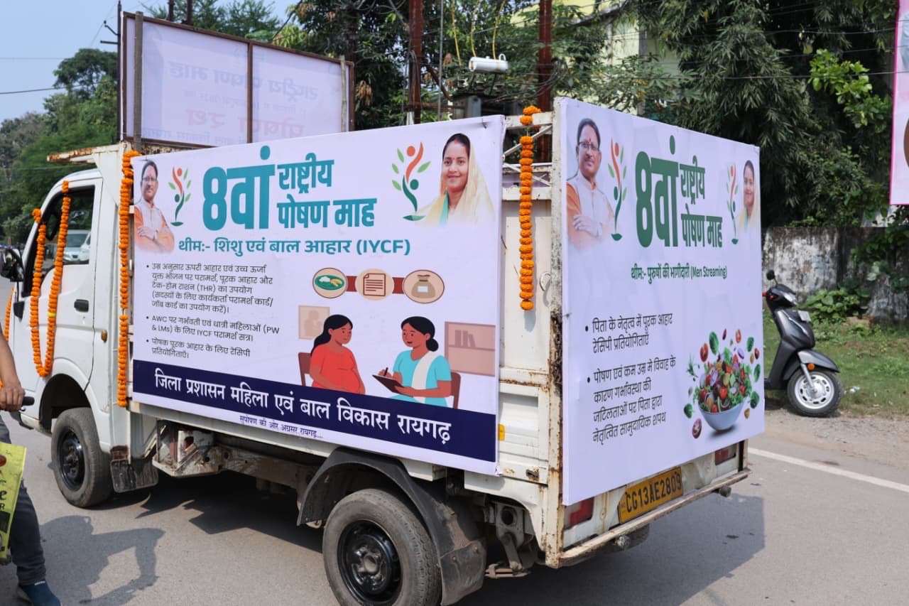 रायगढ़, 14 अक्टूबर 2025/ शासन के निर्देशानुसार एवं कलेक्टर श्री मयंक चतुर्वेदी के मार्गदर्शन में जिले में राष्ट्रीय पोषण माह का आयोजन 16 अक्टूबर तक किया जा रहा है। इसी क्रम में आज नगर निगम रायगढ़ के महापौर श्री जीवर्धन चौहान द्वारा पोषण रथ को हरी झंडी दिखाकर रवाना किया गया। इस अवसर पर उन्होंने कहा कि पोषण रथ आमजन को संतुलित आहार, स्वच्छता और स्वस्थ जीवनशैली के प्रति जागरूक करेगा। स्वस्थ समाज का निर्माण तभी संभव है जब हर नागरिक पोषण के महत्व को समझे।