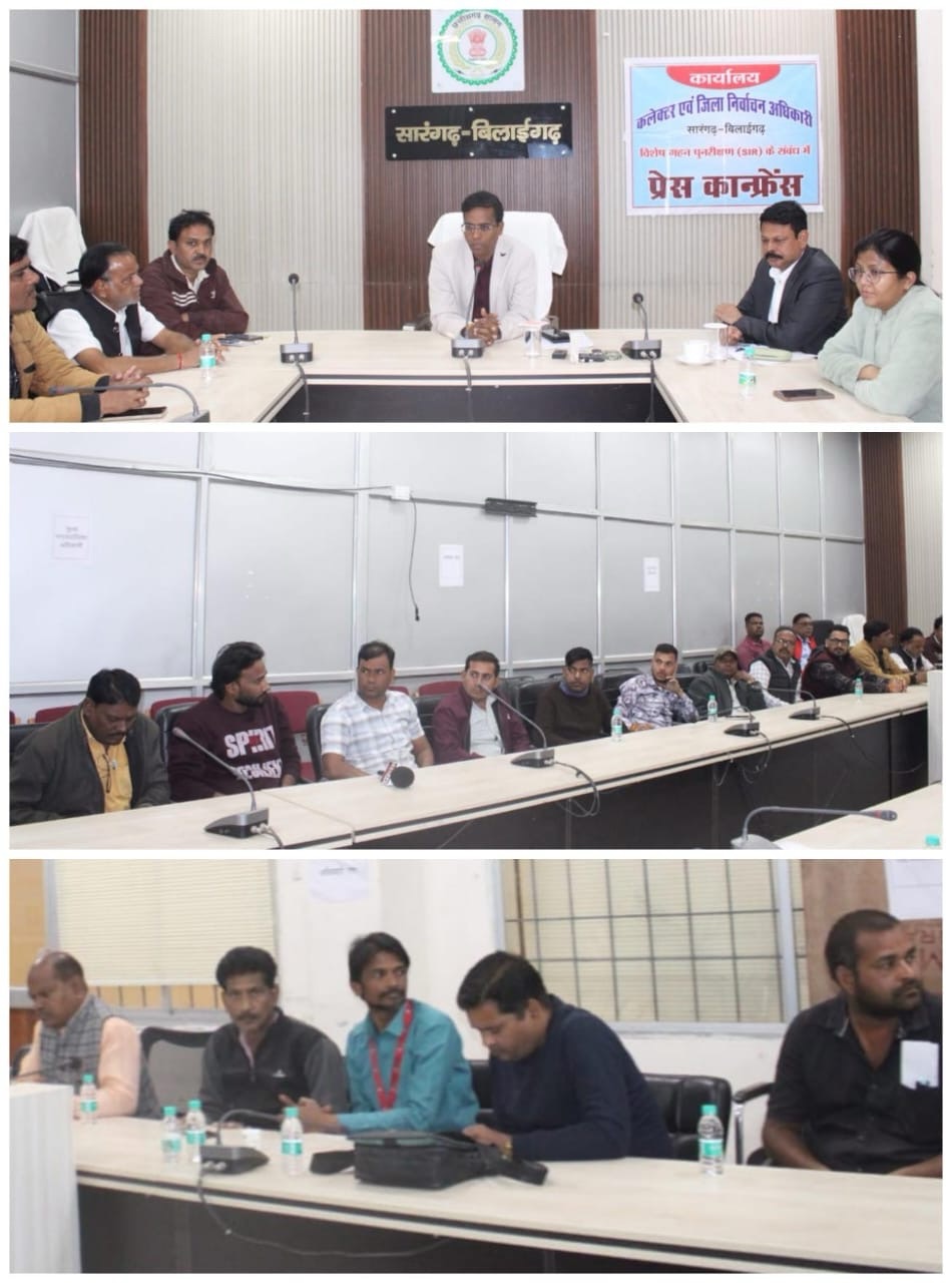 कलेक्टर एवं जिला निर्वाचन अधिकारी डॉ संजय कन्नौजे ने राजनीतिक दलों के पदाधिकारियों और मीडिया को जिले में संपादित विशेष गहन पुनरीक्षण (एसआईआर) की जानकारी दी। उन्होंने बताया कि एसआईआर कार्यक्रम के अनुसार प्रारूप (ड्रॉफ्ट) मतदाता सूची 23 दिसम्बर 2025 को प्रकाशित की गई। मतदाता सूची की बूथवार मुद्रित व डिजिटल प्रतियां सभी राजनीतिक दलों को उपलब्ध कराई गयी। साथ ही बताया गया कि सीईओ छत्तीसगढ़ की वेबसाइट ceochhattisgarh.nic.in एवं जिले की वेबसाइट https://sarangarh-bilaigarh.cg.gov.in/ पर सारंगढ़ बिलाईगढ़ डॉट सीजी डॉट जीओवी डॉट इन में प्रदर्शित की गई है। दावा एवं आपत्ति अवधि 23 दिसम्बर से 22 जनवरी 2026 के दौरान पात्र मतदाताओं के नाम जोड़ने तथा अपात्र नाम कटाने के लिए आवेदन किया जा सकता है। मतदाता सूची का अंतिम प्रकाशन 21 फरवरी को किया जाएगा। जिला निर्वाचन अधिकारी ने बताया कि जो युवा वोटर 1 जनवरी 2026 को या उससे पहले 18 साल के हो गए हैं या 1 अक्टूबर 2026 तक हो जाएंगे, उन्हें फार्म-6 में घोषणा पत्र के साथ आवेदन करने के लिए प्रोत्साहित किया जा रहा है। सभी योग्य युवा वोटरों के नाम निर्वाचक नामावली में जोड़ने के लिए पूरे राज्य में विशेष शिविर लगाए जाएंगे।