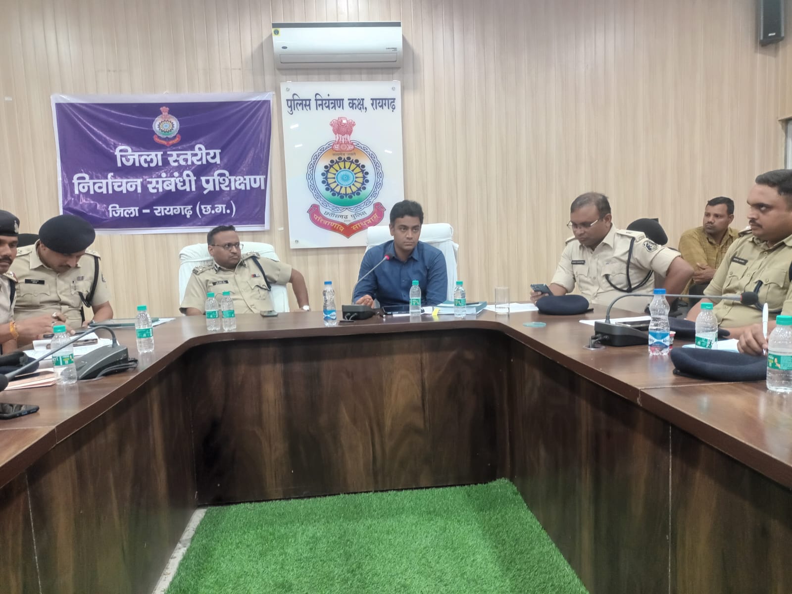 रायगढ़, आज दिनांक 11 अक्टूबर 2023 को पुलिस नियंत्रण कक्ष रायगढ़ में पुलिस अधिकारियों के लिए एक दिवसीय जिला स्तरीय निर्वाचन प्रशिक्षण कार्यक्रम का आयोजन किया गया था जिसमें वरिष्ठ पुलिस अधिकारियों द्वारा अधिनस्थ पुलिस अधिकारियों को प्रभावशील आचार संहिता का प्रभावी रूप से पालन कराने एवं सुरक्षा प्रबंध को लेकर की जाने वाली तैयारी के संबंध में मास्टर ट्रेनर के रूप में अपना वक्तव्य दिया गया ।